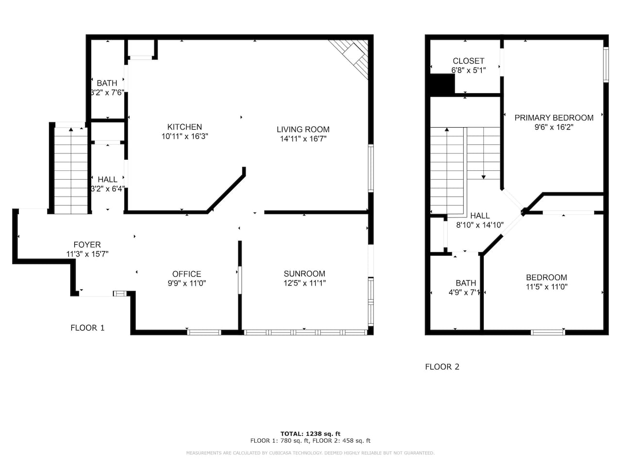 2 Bathrooms (1 full, 1 half)