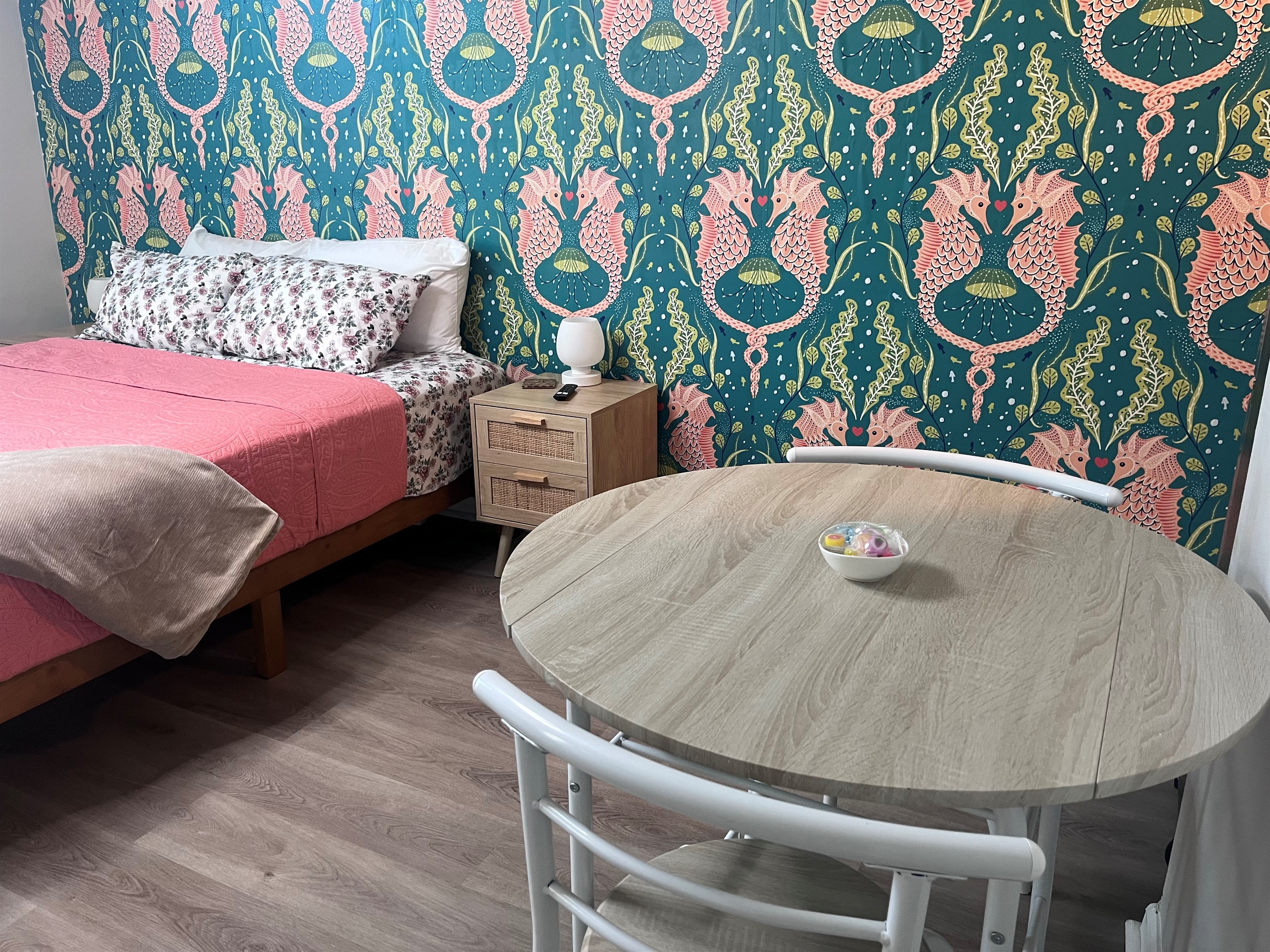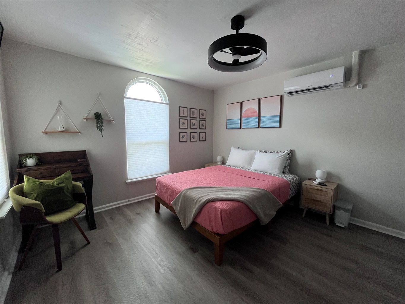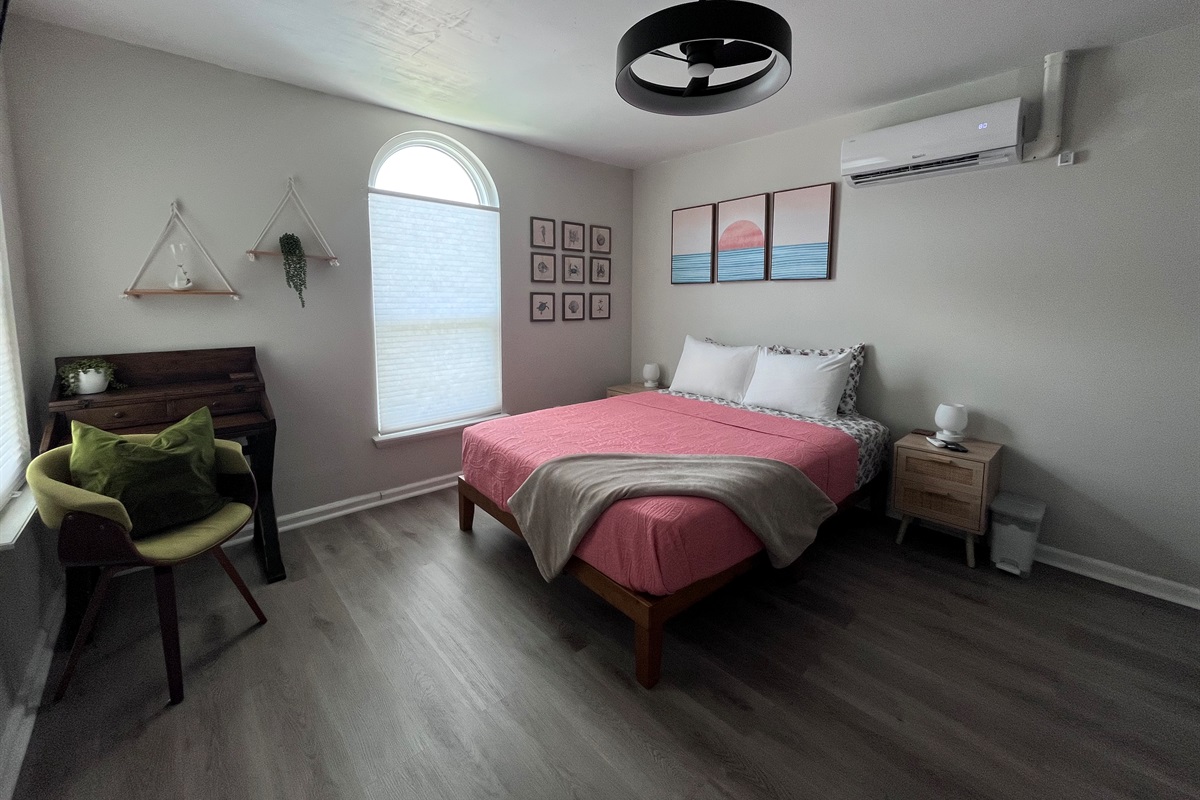 1 Bedroom • 1 Bathroom 1 Bath • Sleeps 1-2Discover this charming efficient studio just one mile from Hanna Park's pristine beach and 447 acres of coastal paradise. Thoughtfully designed with character, featuring a queen bed, kitchenette with 4.4 cubic foot refrigerator, two-burner cooktop, microwave, and 44" smart TV.